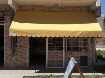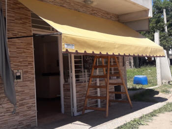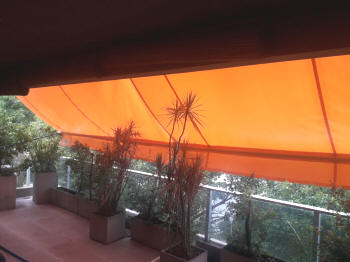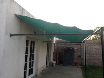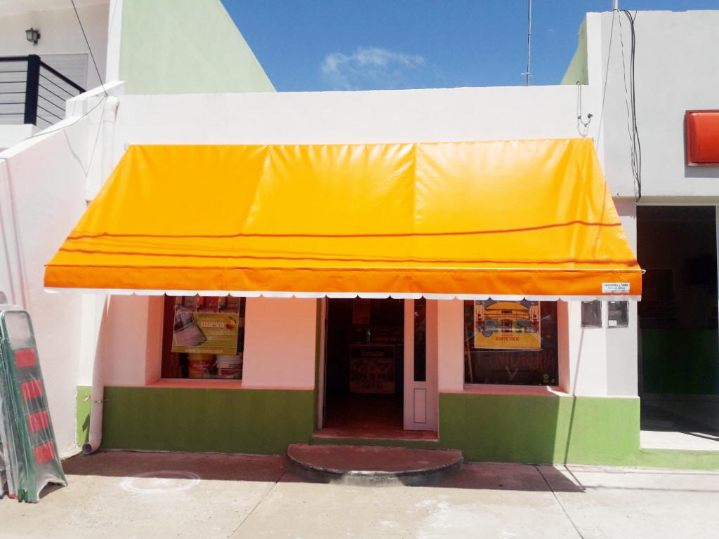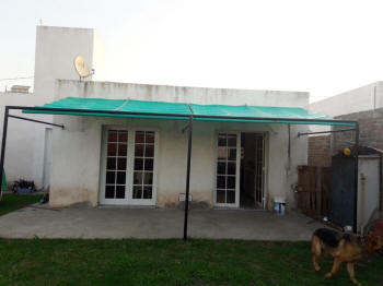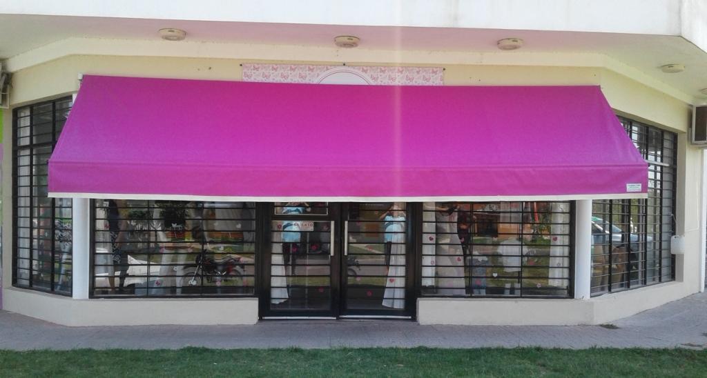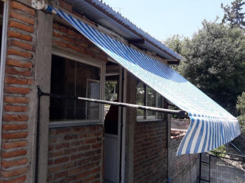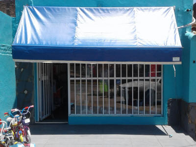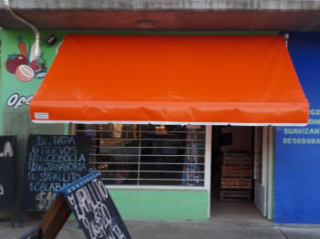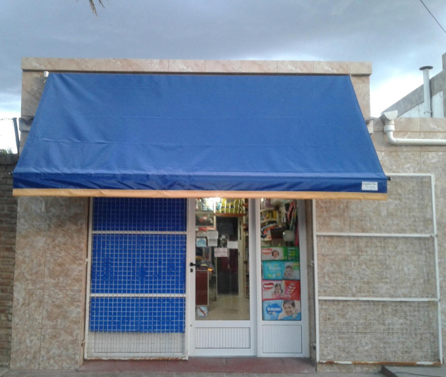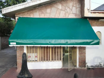 TOLDOS: Se confeccionan en Lona, y realizan en tres medidas de saliente standard 1.20 mt., 1.50 mt. y 1.80 mt., a lo que se le agrega el volado, y se le instala en la parte superior una maquina para que se pueda enrollar cuando sea necesario.