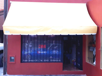 TOLDOS: Se confeccionan en Lona, y realizan en tres medidas de saliente standard 1.20 mt., 1.50 mt. y 1.80 mt., a lo que se le agrega el volado, y se le instala en la parte superior una maquina para que se pueda enrollar cuando sea necesario.
